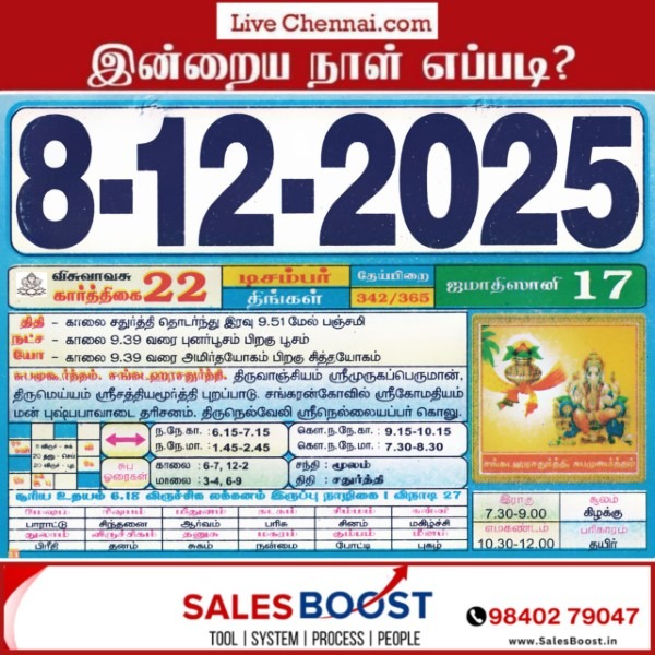December 08, 2025 – Monday | Karthigai 22 | Visuvavasu Year