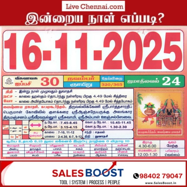 | November 02, 2025 – Sunday | Aippasi 30 | Visuvavasu Year | |||