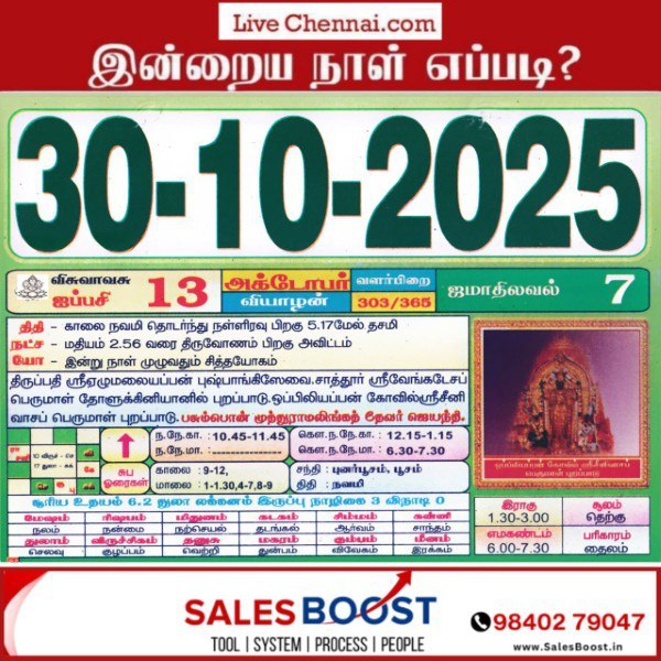 October 30, 2025 – Thursday | Aippasi 30 | Visuvavasu Year