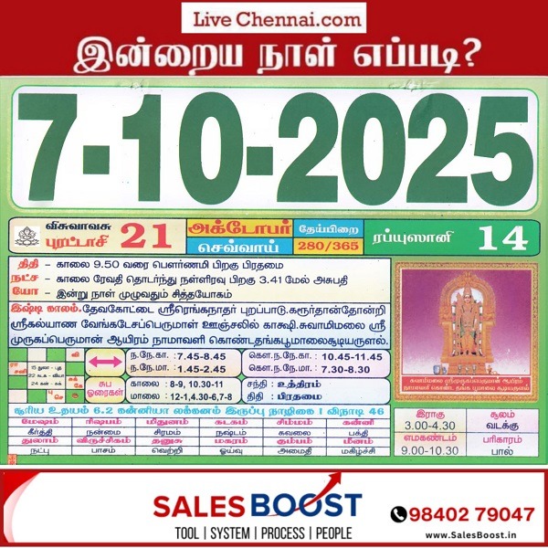 | October 07, 2025 – Tuesday | Purattaasi 21 | Visuvavasu Year | |||