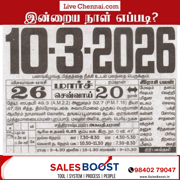 | March 10, 2026 – Tuesday | Masi 26 | Visuvavasu Year | |||