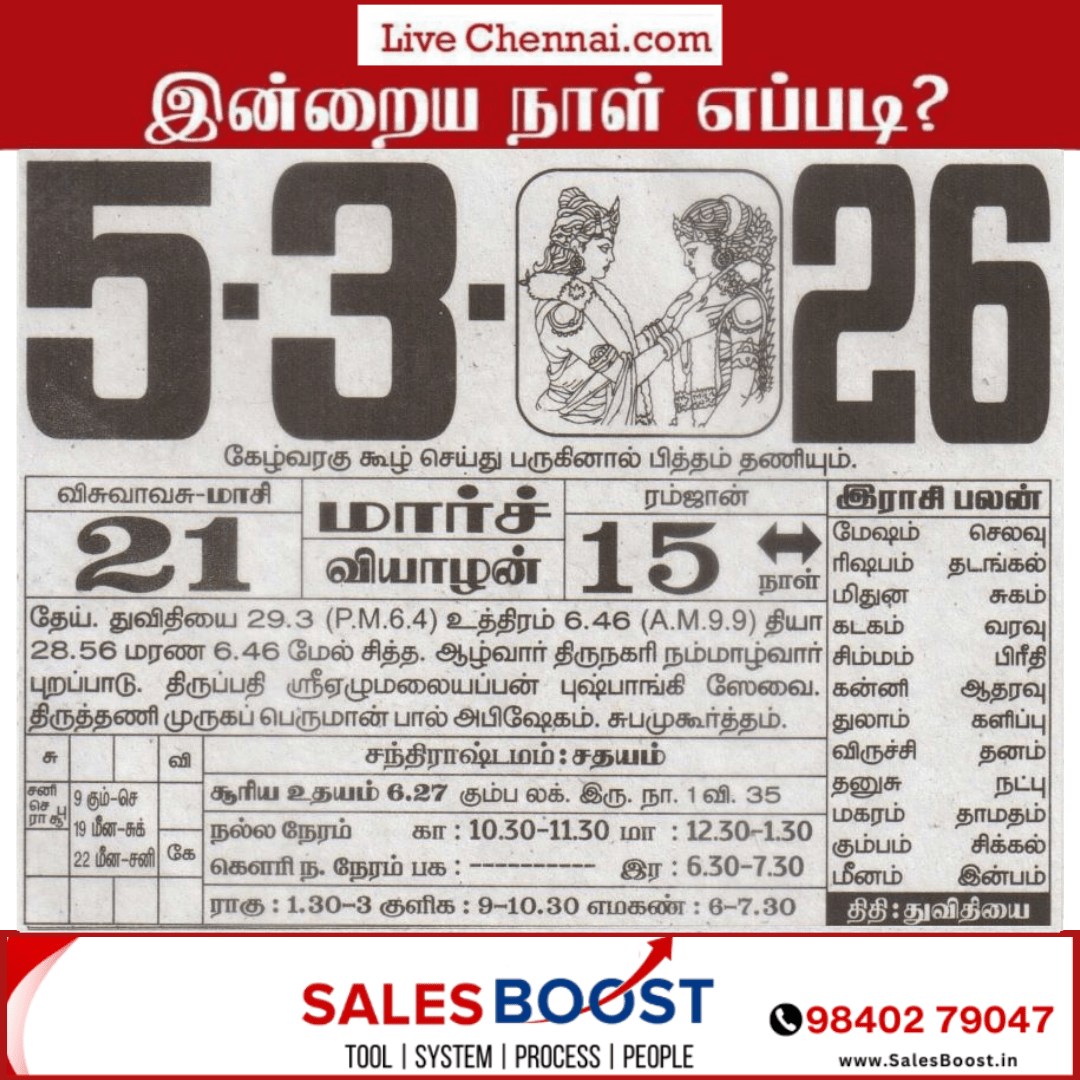 | March 5, 2026 – Thursday | Masi 21 | Visuvavasu Year | |||