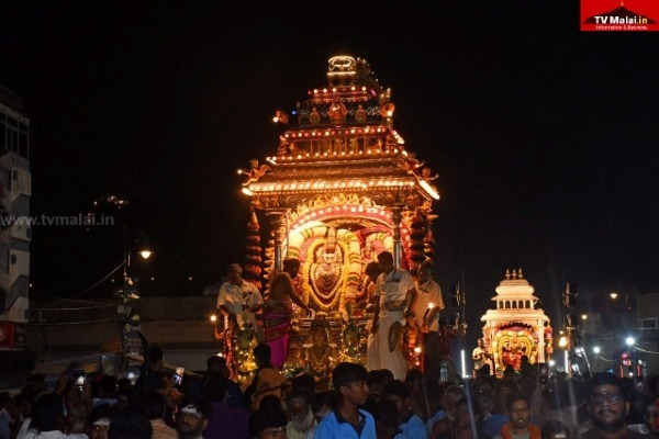 திருக்கார்த்திகை தீப திருவிழா – 2025 திருவண்ணாமலை அண்ணாமலையார் திருக்கோவிலில் திருக்கார்த்திகை தீப திருவிழாவை முன்னிட்டு 64 அடி உயர தங்க கொடி மரத்தில் கொடியேற்றத்துடன் கோலாகலமாக இன்று (24.11.2025) தொடங்கியது. பின் வெள்ளி இந்திர விமானத்தில் பஞ்சமூர்த்திகள் மாட வீதி உலா நடைபெற்று வருகிறது. இதில் பல்லாயிரக்கணக்கான பக்தர்கள் கலந்து கொண்டு சாமி தரிசனம் செய்தனர். இதில் 10 நாட்களும் திருவிழா நடைபெறும். பத்தாம் நாளான புதன்கிழமை ( 03.12.2025 ) அன்று அதிகாலை 04:00 மணிக்கு பரணி தீபமும், அன்று மாலை 06:00 மணியளவில் 2,668 அடி உயரம் உள்ள அண்ணாமலை உச்சியில் மகா தீபம் ஏற்றப்பட உள்ளது.