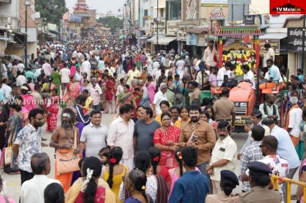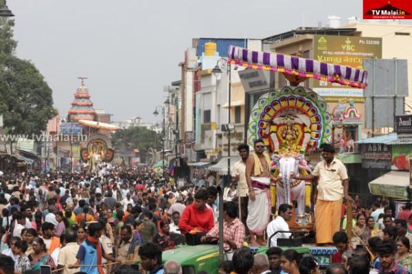 தீபத் திருவிழா ஆறாம் நாள், இன்று காலை வெள்ளி யானையில் சந்திரசேகரர் மாடவீதி உலா. 63 நாயன்மார்கள் உற்சவ மூர்த்திகளாக தனித்தனி வாகனங்களில் மாட வீதி வலம் வந்து பக்தர்களுக்கு அருள்பாலித்தார். இதில் ஏராளமான பக்தர்கள் கலந்து கொண்டு சாமி தரிசனம் செய்தனர்