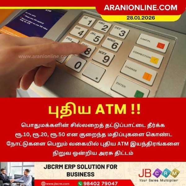 பொதுமக்களின் சில்லறைத் தட்டுப்பாட்டை தீர்க்க ரூ.10, ரூ.20, ரூ.50 என குறைந்த மதிப்புகளை கொண்ட நோட்டுகளை பெறும் வகையில் புதிய ATM இயந்திரங்களை நிறுவ ஒன்றிய அரசு திட்டமிடப்பட்டுள்ளது.