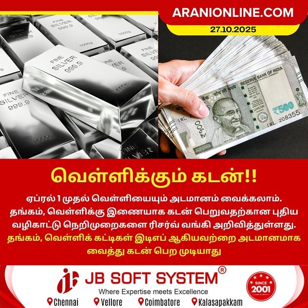 ஏப்ரல் 1 முதல் வெள்ளியையும் அடமானம் வைக்கலாம். தங்கம், வெள்ளிக்கு இணையாக கடன் பெறுவதற்கான புதிய வழிகாட்டு நெறிமுறைகளை ரிசர்வ் வங்கி அறிவித்துள்ளது.