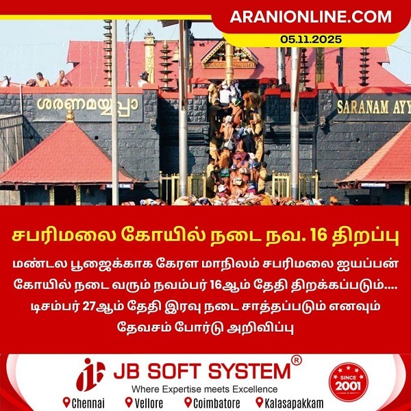 மண்டல பூஜைக்காக கேரள மாநிலம் சபரிமலை ஐயப்பன் கோயில் நடை வரும் நவம்பர் 16 ஆம் தேதி திறக்கப்படும். டிசம்பர் 27 ஆம் தேதி இரவு நடை சாத்தப்படும் எனவும் தேவசம் போர்டு அறிவிப்பு.