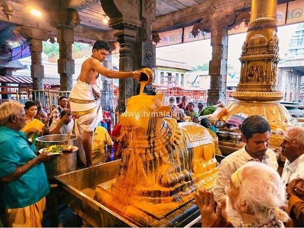 திருவண்ணாமலையில் அருணாச்சலேஸ்வரர் திருக்கோவிலில் நேற்று (19-09-2025)  புரட்டாசி மாத அமாவாசை பிரதோஷத்தை முன்னிட்டு நந்தி பகவானுக்கு சிறப்பு அபிஷேக ஆராதனை நடைபெற்றது. இதில் திரளான பக்தர்கள் கலந்து கொண்டு அரோகரா கோஷத்துடன் தரிசனம் செய்தார்கள்.