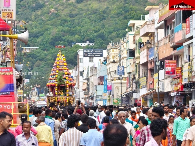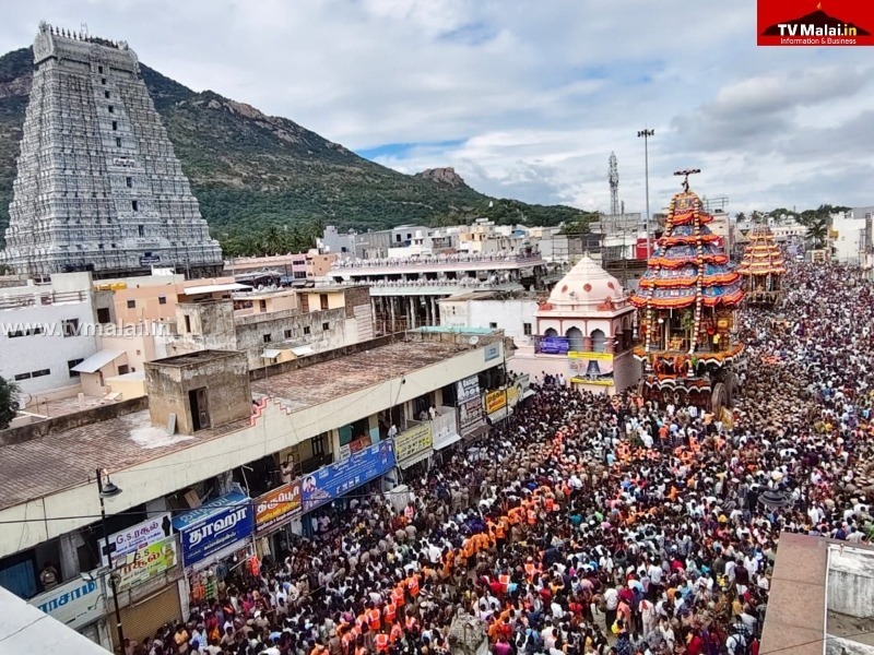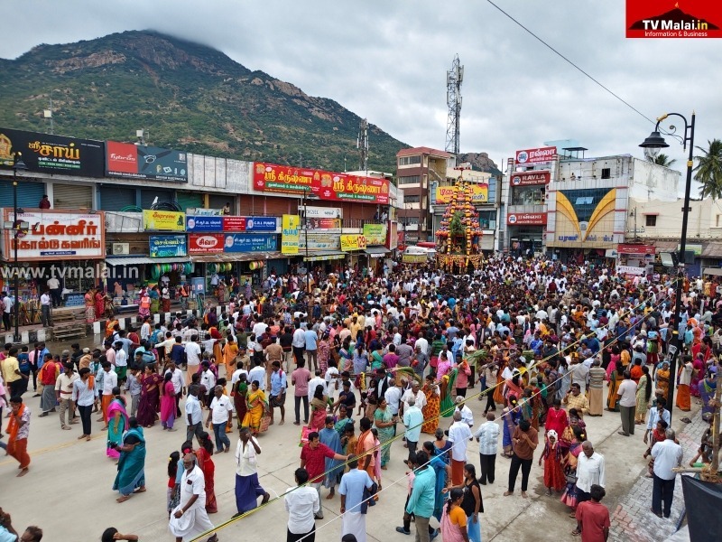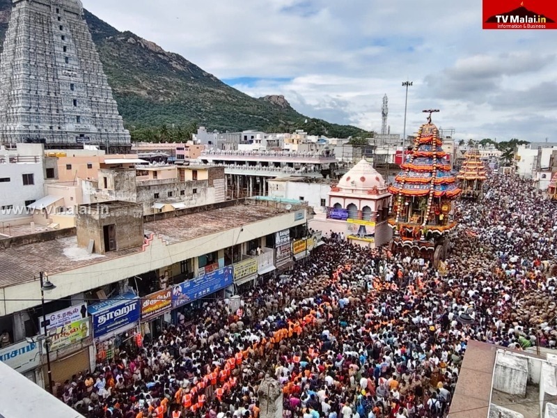 திருவண்ணாமலை அண்ணாமலையார் திருக்கோவிலில் கார்த்திகை தீபத் திருவிழா ஏழாம் நாள் பஞ்ச மூர்த்திகள் நாள் மகா தேரோட்டம் நடைபெற்றது. இதில் இலட்சக்கணக்கான பக்தர்கள் கலந்து கொண்டே தேரை வடம் பிடித்து இழுத்து சென்றனர்.